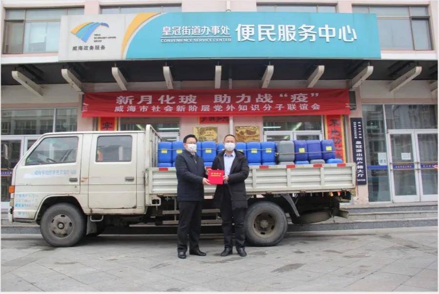 2月28日,威海新月化玻儀器有限公司總經(jīng)理李進華為皇冠街道辦事處捐贈了5噸消毒液,支援街道的疫情防控工作。區(qū)工委委員、管委會副主任、組織部部長梁明同志為李總頒發(fā)了榮譽證書,市委統(tǒng)戰(zhàn)部班子成員、市工商聯(lián)副主席苗建臣同志,皇冠街道黨工委書記劉健同志,皇冠街道黨工委副書記、辦事處主任徐翔同志,皇冠街道辦事處人大聯(lián)絡(luò)辦公室主任初玉良同志,皇冠街道黨工委副書記劉玉凱同志參加了捐贈儀式,對威海新月化玻儀器有限公司的捐贈表示真誠感謝!