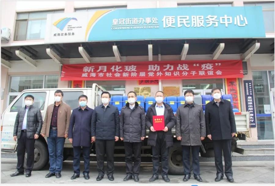 威海新月化玻儀器有限公司是一家經(jīng)營95%乙醇酒精、75%消毒酒精、過氧乙酸等化工制劑和防護口罩、測溫儀、防護鞋套等特種裝備的專業(yè)化銷售企業(yè)。總經(jīng)理李進華,是威海市社會新階層黨外知識分子聯(lián)誼會的成員,也是皇冠街道商會的會長。新冠病毒肺炎疫情開始后,大年初二李總就帶領(lǐng)公司20多名員工放棄休假,積極聯(lián)系貨源,調(diào)配籌集物資,全力保障市場供應(yīng)。在消毒商品貨源極端緊張的情況下,公司采取限量供應(yīng),努力保障所有客戶的需求能夠兼顧,并優(yōu)先將產(chǎn)品供應(yīng)給最急需防護物資的防疫一線。