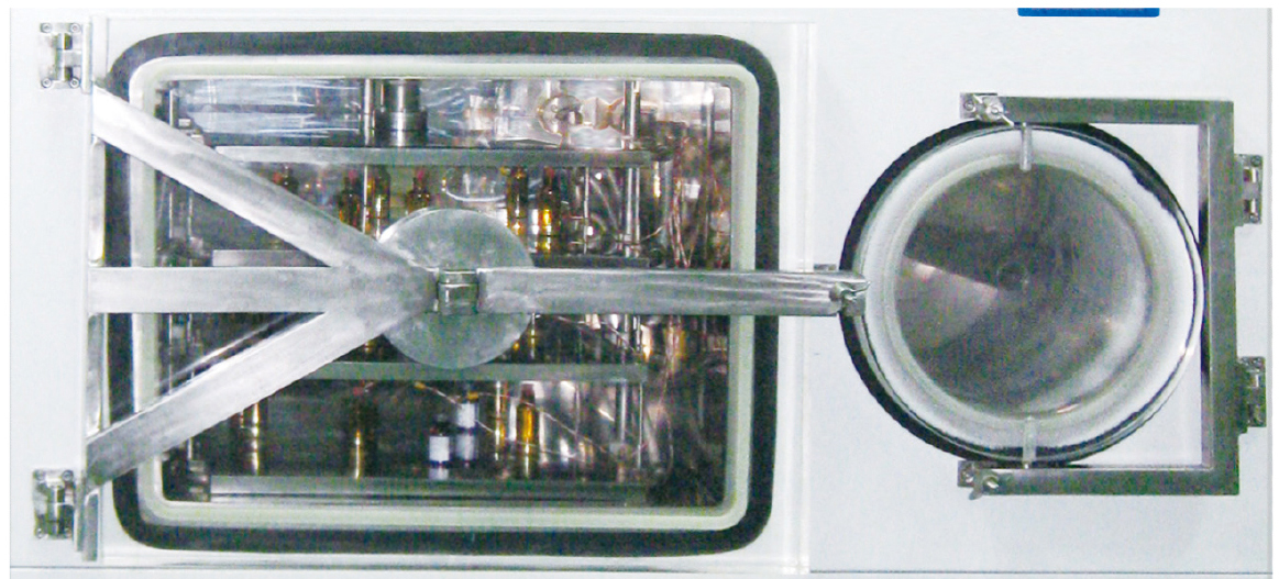 采用高密度的有機玻璃門,即保證可靠性,又可以在操作過程中清晰觀察物料的凍干過程;